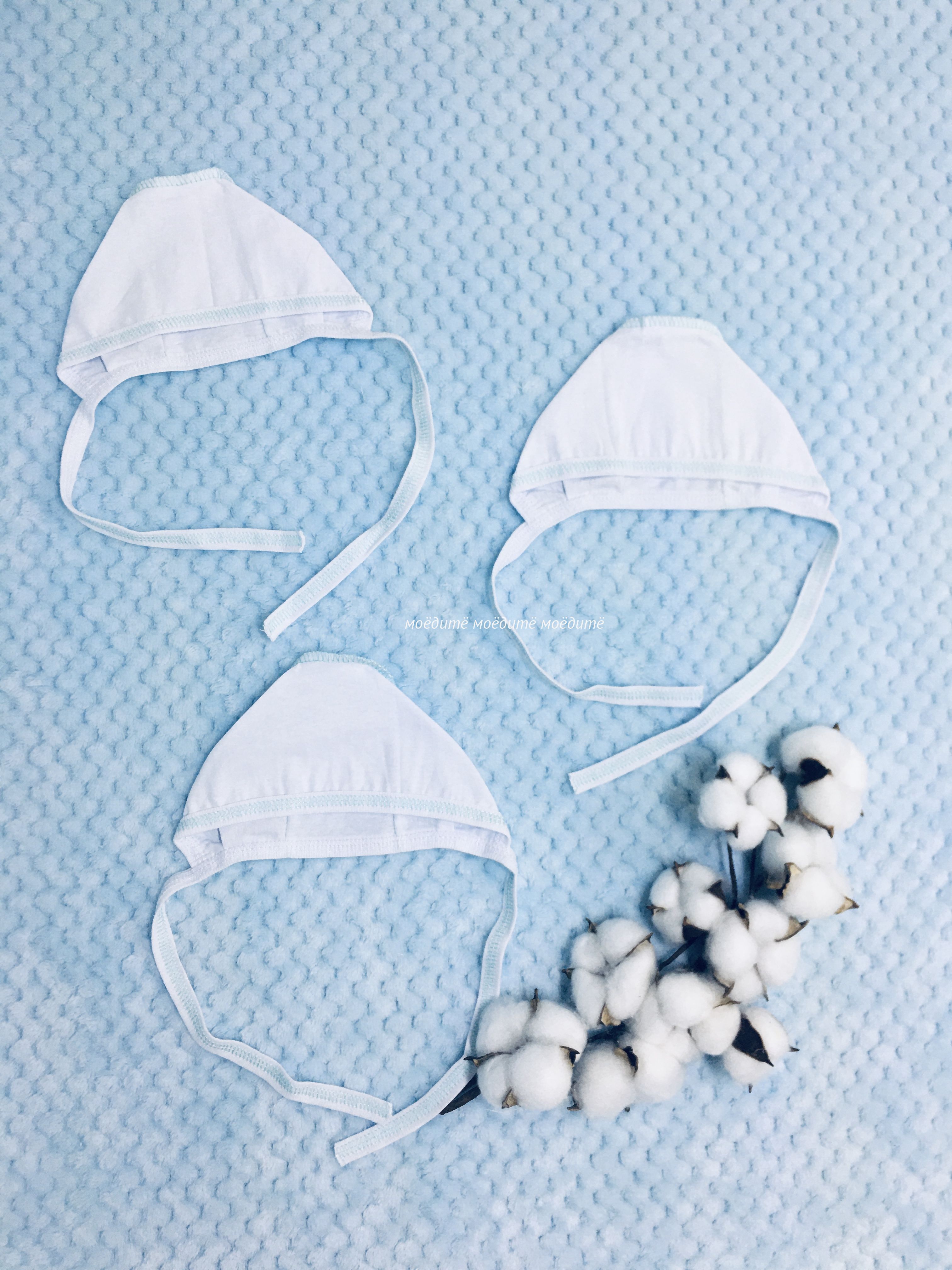 "МоёДитё" чепчик кулирка белый + мята ЧК015 "Гардения" в Владикавказе