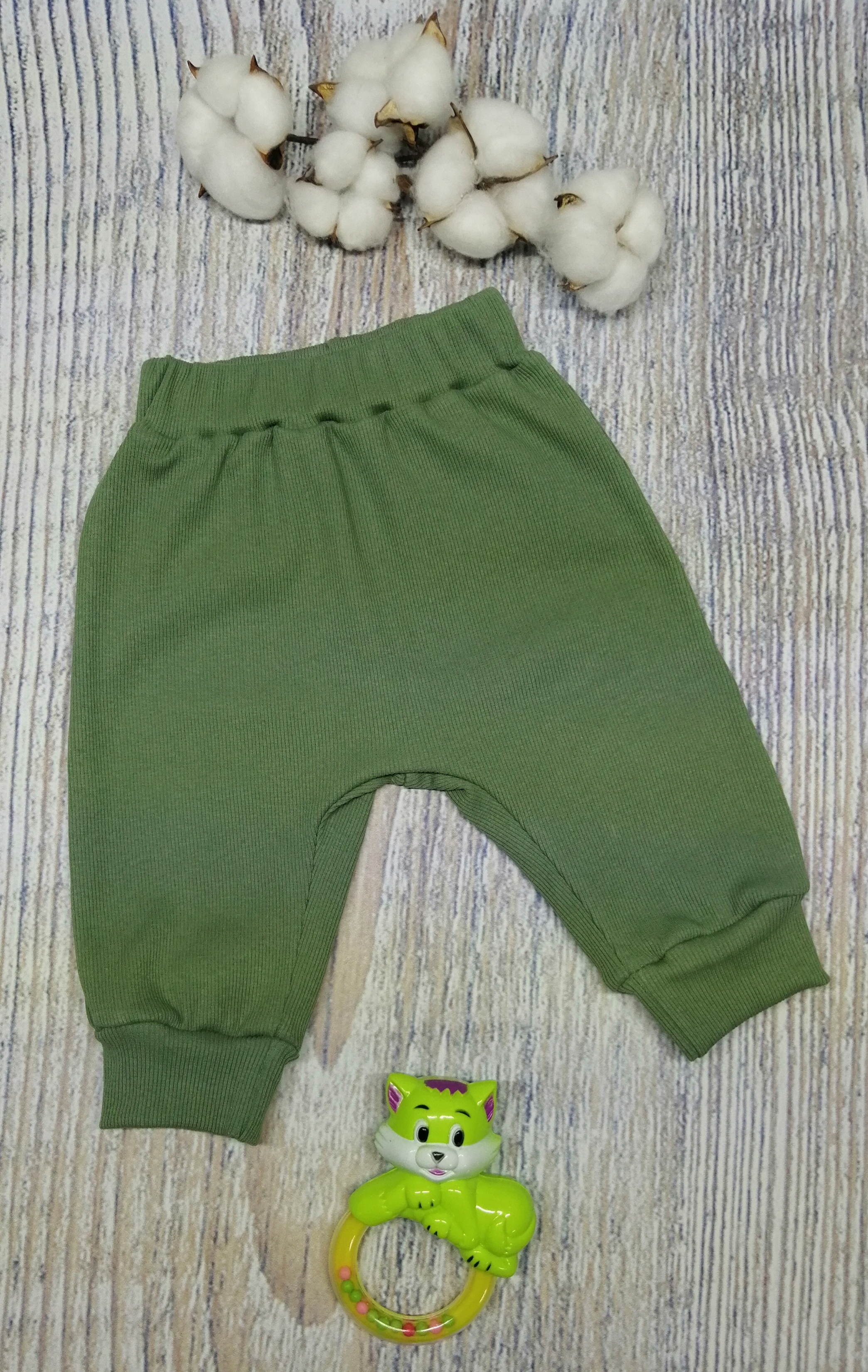 1. Штанишек на широком поясе с резинкой, снизу на манжетах.